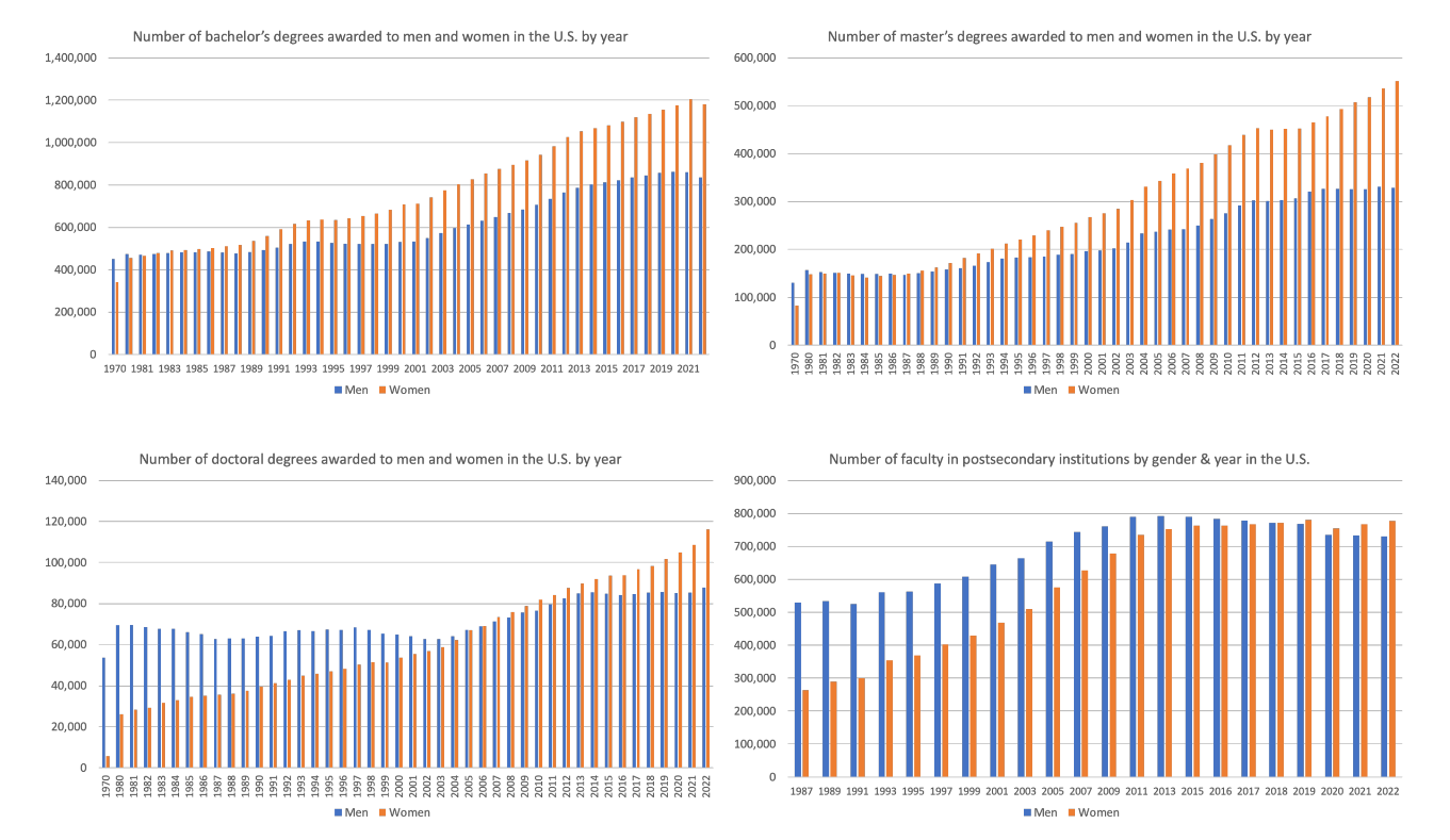 Besonders eindrucksvoll ist die Entwicklung in der Hochschulbildung in den USA (National Center for Education Statistics, 2021, 2023a, 2023b):